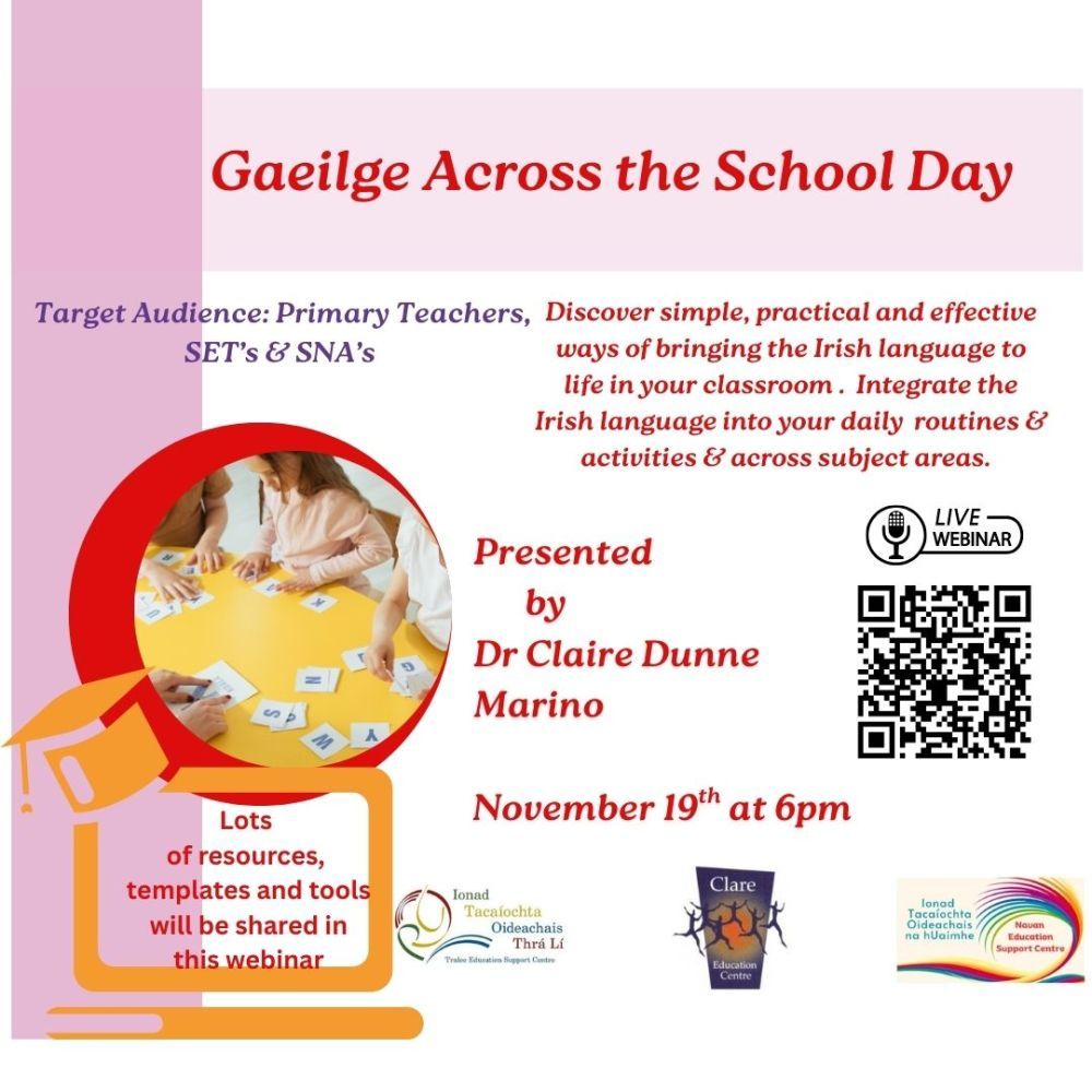 Discover simple, practical and effective ways of bringing the Irish language to life in your classroom. Integrate the Irish language into your daily routines and activities and across subject areas.